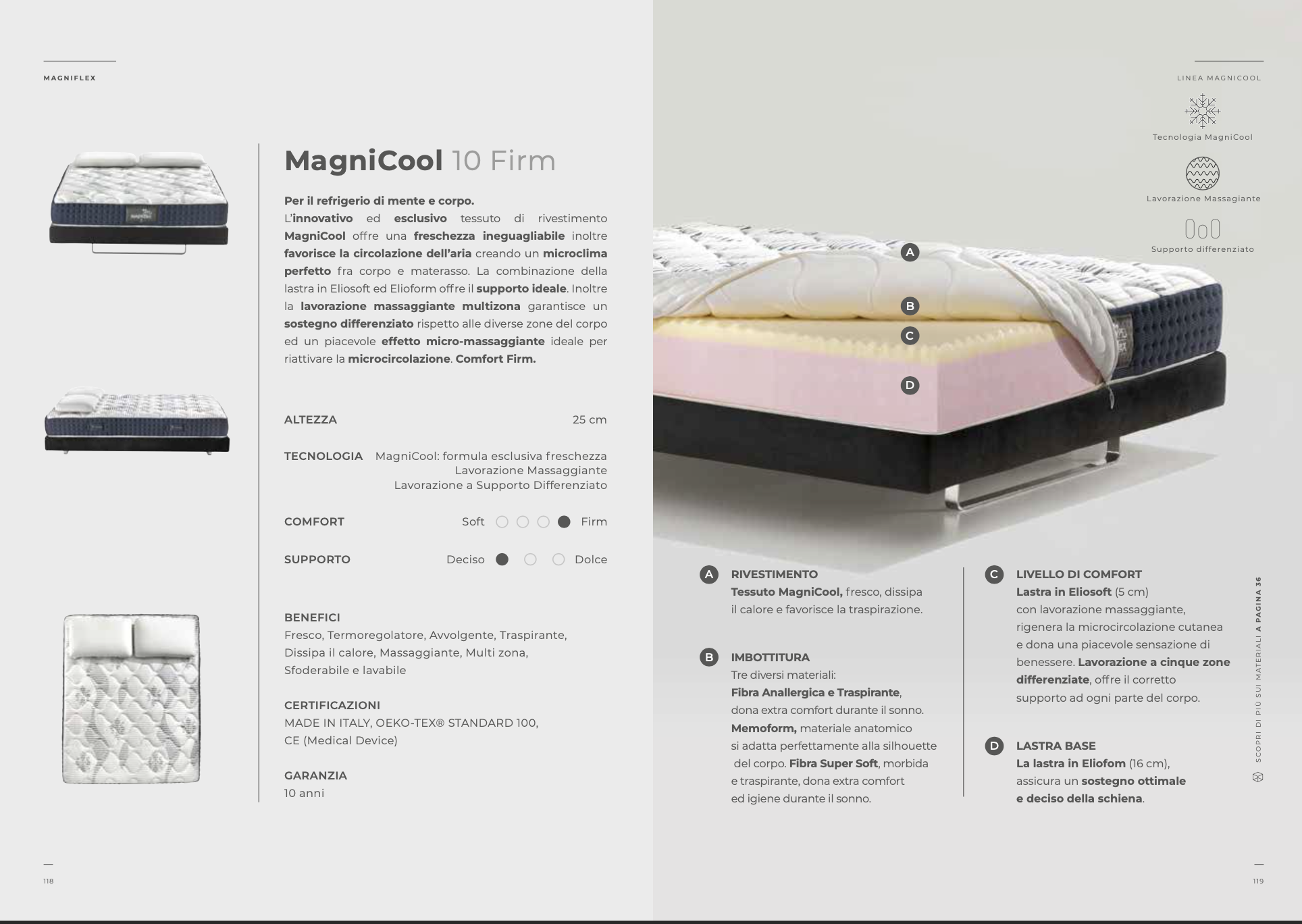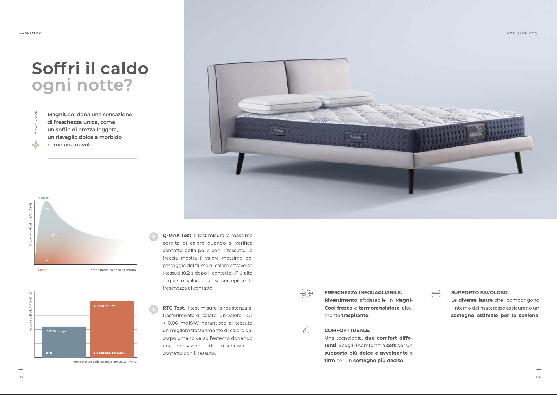L’innovativo ed esclusivo tessuto di rivestimento MagniCool offre una freschezza ineguagliabile inoltre favorisce la circolazione dell’ariacreando un microclima perfetto fra corpo e materasso.