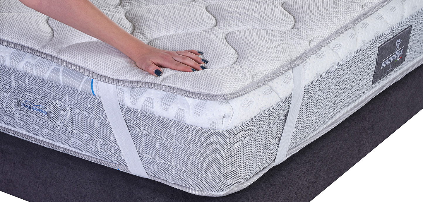 Il Topper Magnicool 3D, con tessuto fresco, traspirante e termoregolatore, nasce per adattarsi perfettamente al corpo e, grazie alla lavorazione massaggiante, rigenera la microcircolazione del corpo con un’azione costante durante il riposo.